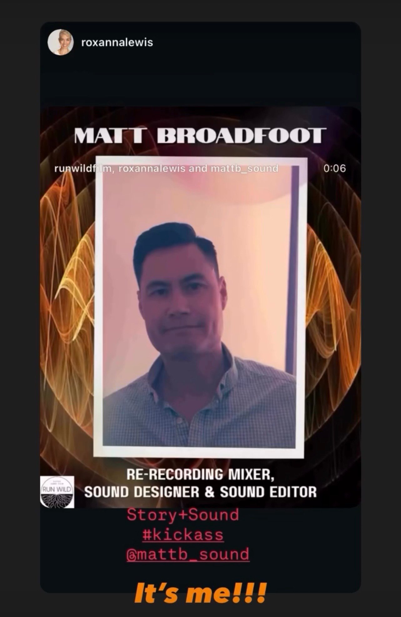 "Regarding my collaboration with Mr. Broadfoot - we collaborated briefly earlier this year, from May to July, when I asked him to do a professional sound mix for my senior project. A horror film that runs 25 minutes long and contains multiple elaborate effects, musical sequences and many layers of sound design. As a student this was my first time working with a sound mixer in a professional capacity, and Matt was very mindful of this fact. He made things easy for me. For that reason I will always remember him as a generous collaborator.