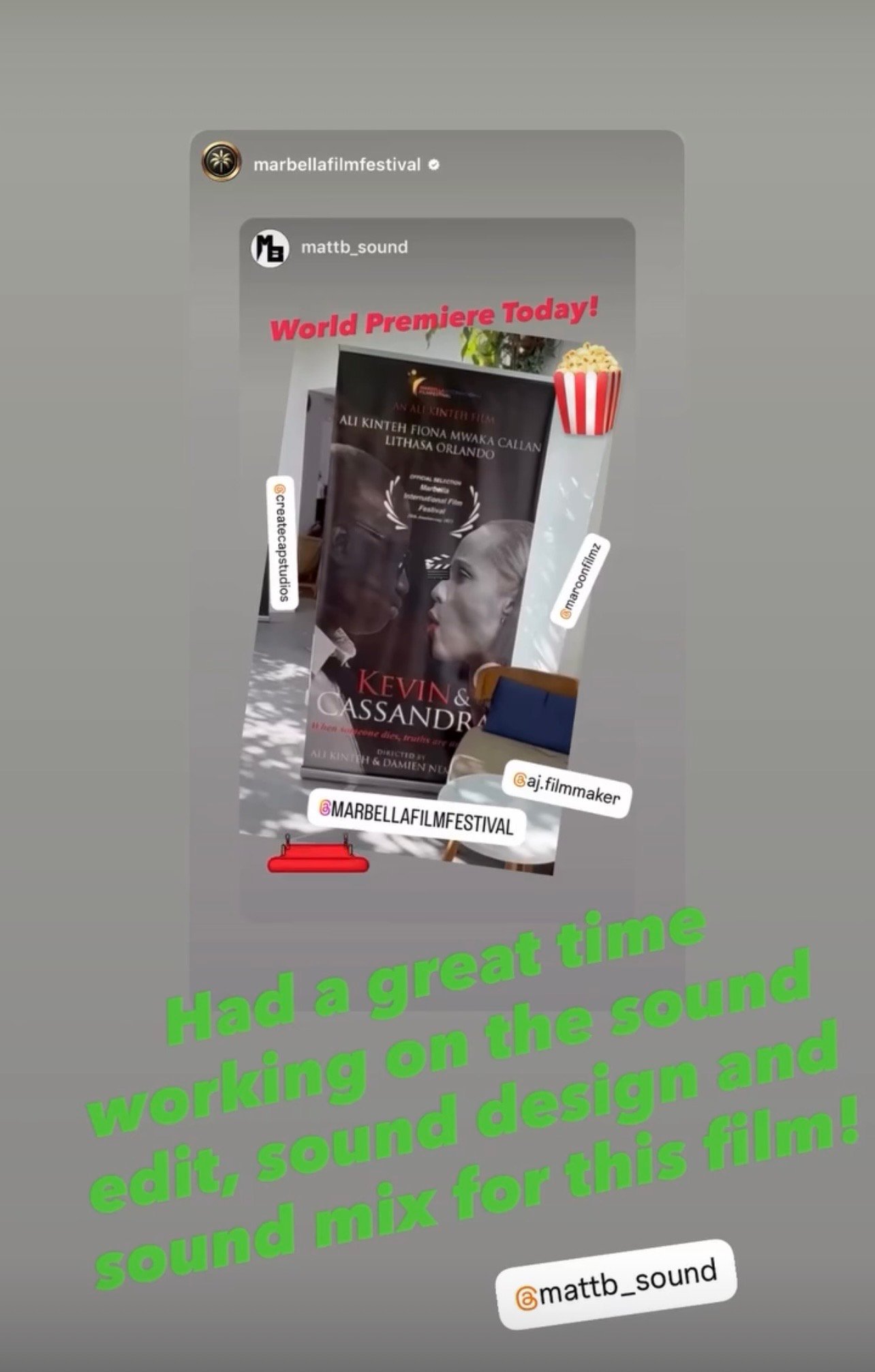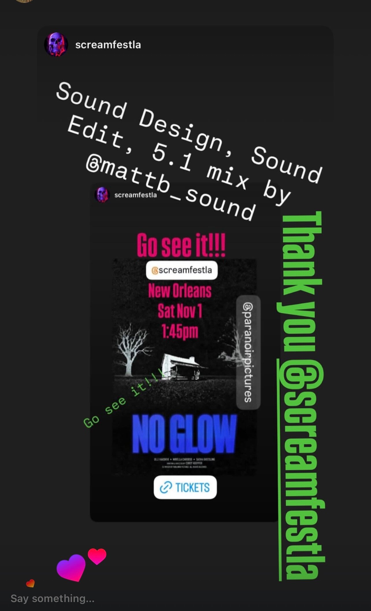 I would absolutely work with Matt again—and sincerely hope to do so on my next film. I recommend him without hesitation to any filmmaker or team looking for top-tier sound work, professionalism, and a truly collaborative experience."