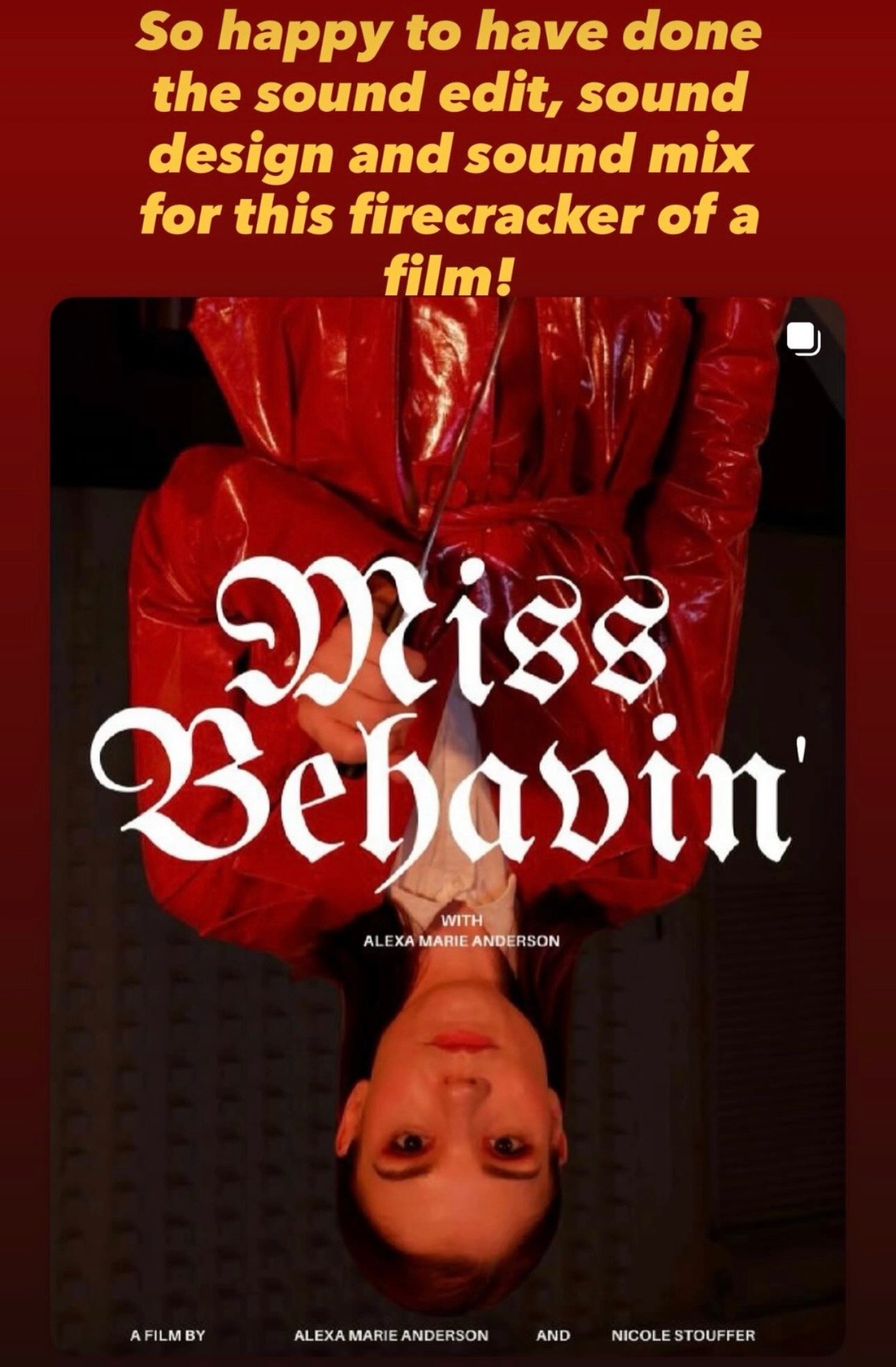 "Working with Matt was the smoothest post-production sound edit experience our team has ever experienced. He elevated our project with attention to nuance in story, worked efficiently on our budget scope, and made our short film a strong contender at film festival market. Already looking forward to engaging with him again!"